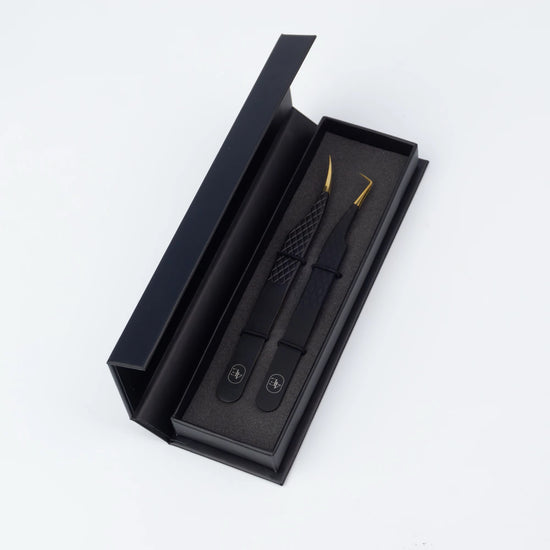 The 4EST Speedy Duo Tweezers are crafted from surgical-grade steel and finished in a sleek matte black. Featuring our signature fiber-grip tip, the ribbed interior texture delivers unmatched pickup and control, perfect for even the thinnest lashes and advanced volume techniques.